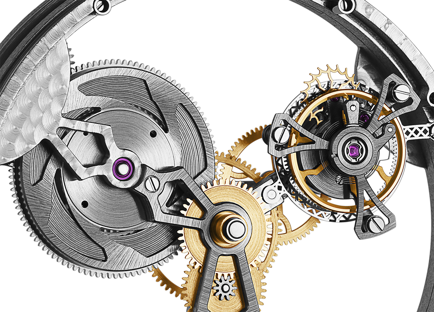 On the technical side, Hysek has retained most of the properties of the original manufacture movement HW12. The HW14 manual wind calibre dispenses with the need for an oscillating weight – another unwelcome encumbrance when it comes to the IO Skeleton Tourbillon.