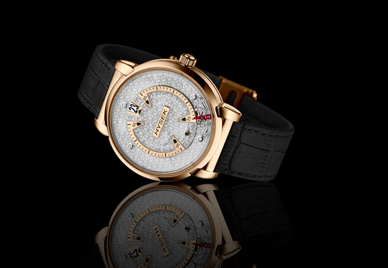 The IO line is intended for a more classical customer, sensitive to the very distinctive design which embodies the HYSEK brand. This aesthetically perfect timepiece with rounded curves is available in different version as Jumping Hours,
